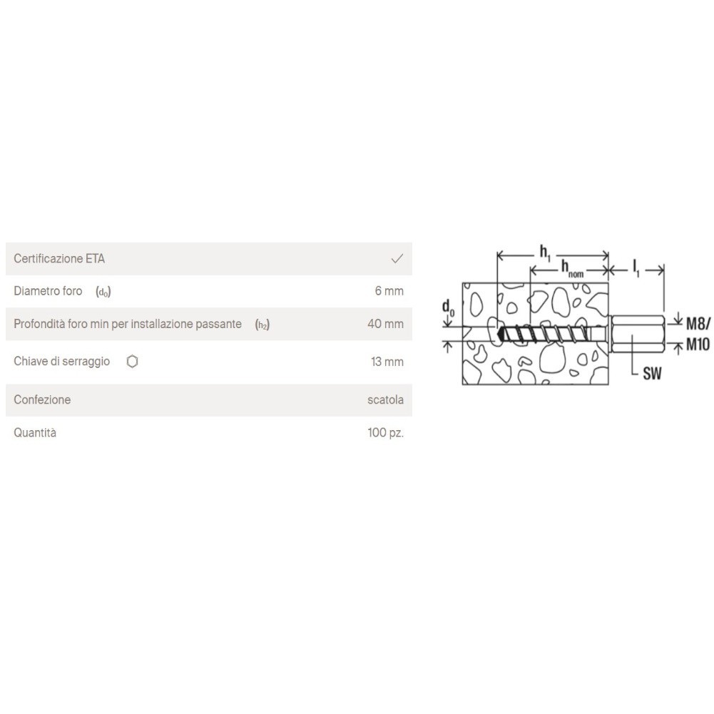 Profondità di ancoraggio inferiori a 40 mm sono approvate secondo ETA 18/0242 e quindi ammesse solo all'interno di fissaggi multipli in sistemi non strutturali.