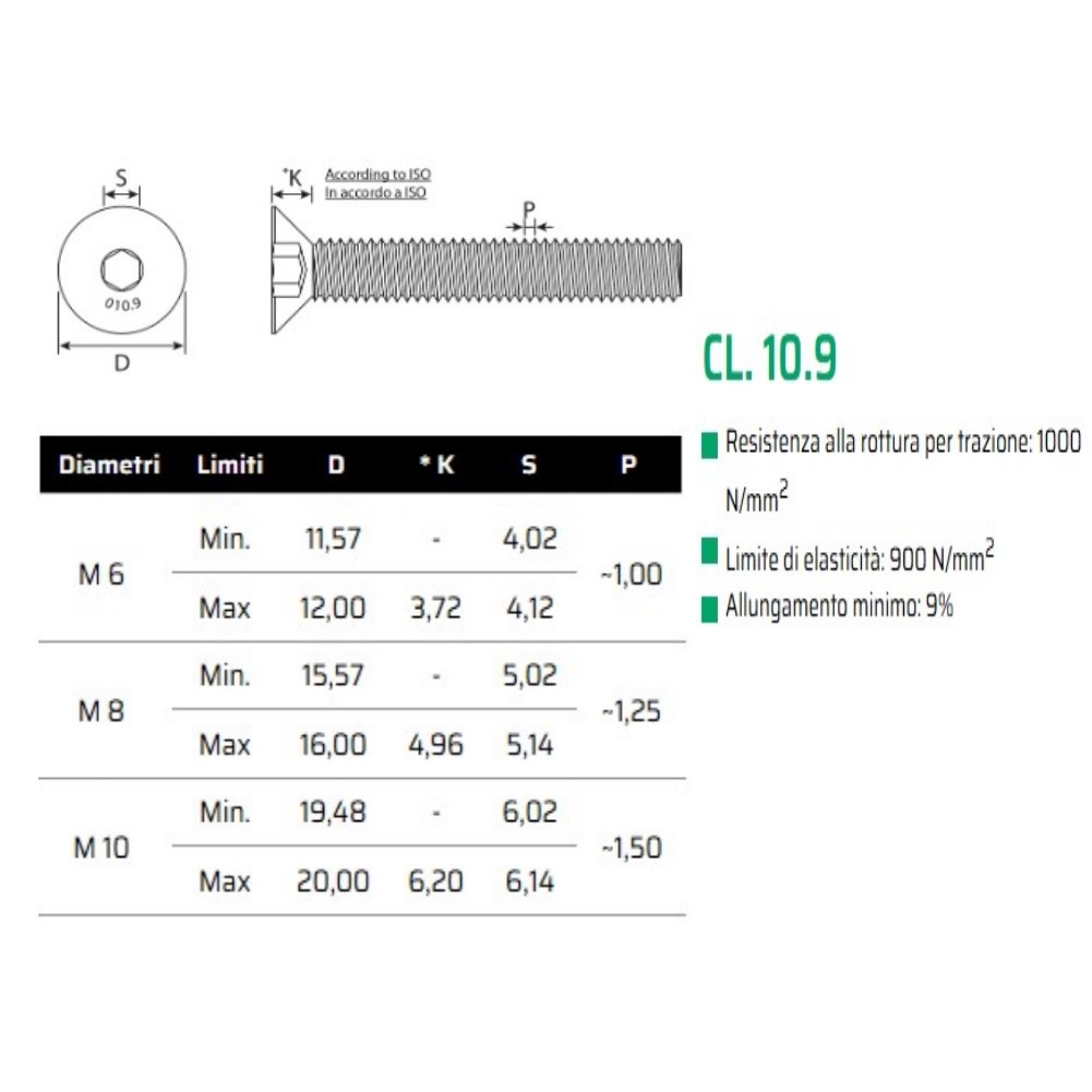 Vite per metallo a testa svasata piana con impronta esagono incassato in ferro zincato UNI5931 DIN912 .