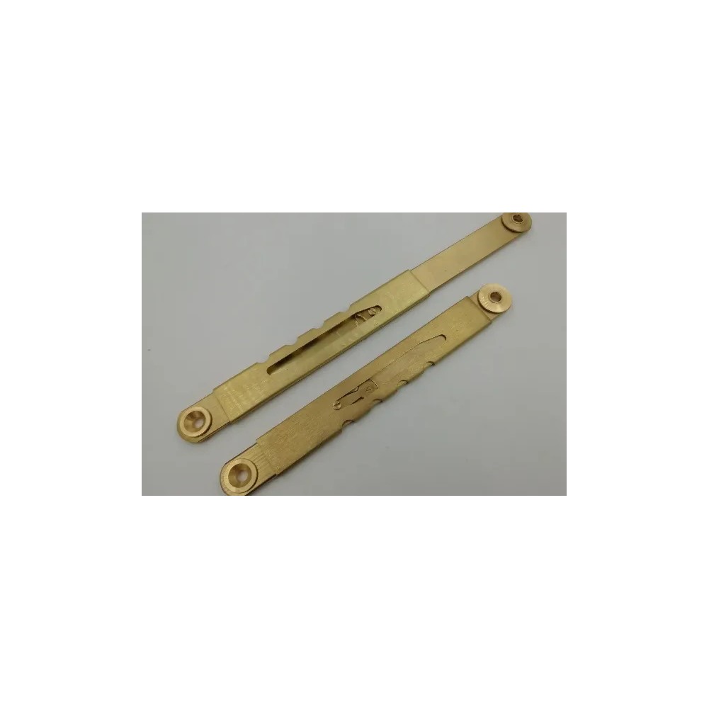 Movimento a cremagliera o compasso per ante a wasistas a 4 scatti in ottone. Lunghezza chiuso cm.17 foro-foro, lunghezza aperto cm.24 foro-foro. Disponibile versione destra o sinistra. Spessore mm.6.